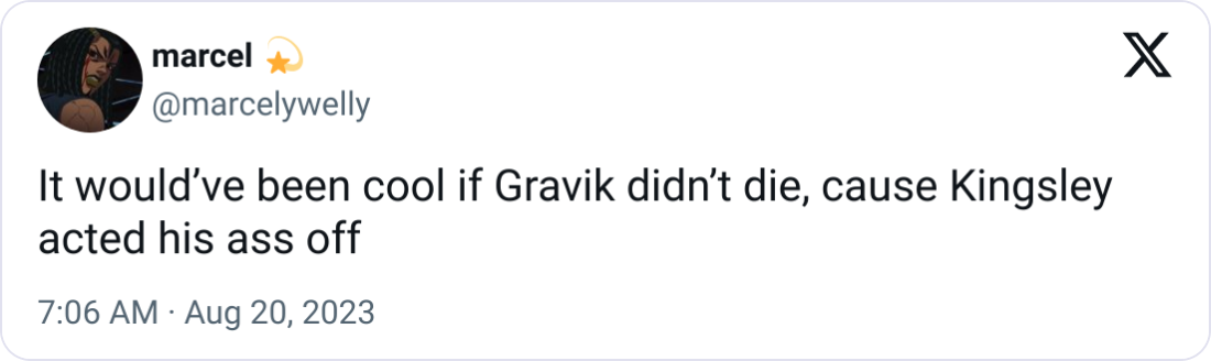 However, it wasn’t just the overall nature of the show that many viewers took issue with. Some felt that it wasted its few good characters with poor plotting and writing, especially the main villain in the series, the Skrull rebel leader Gravik (Kingsley Ben-Adir), who was killed off at the end of the final episode.
