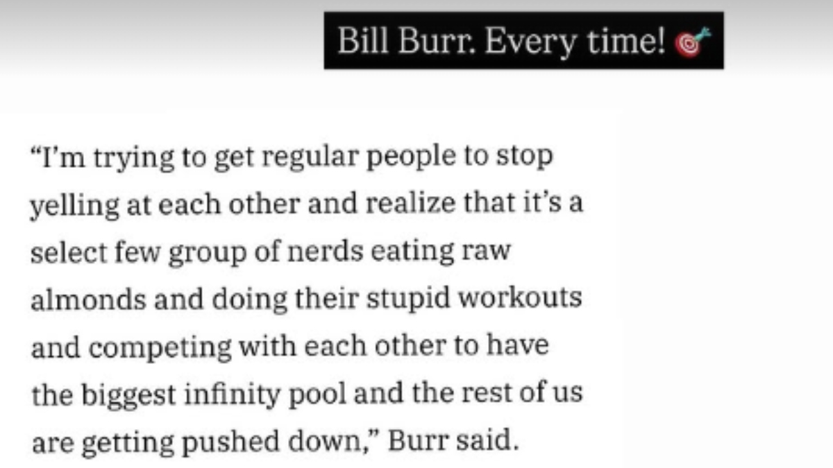 After Bill Burr talked about “That idiot Elon Musk!” in an NPR “Fresh Air” interview, Edebiri shared some of his statements via Instagram Stories and wrote, “Bill Burr. Every time!” and shared a bullseye emoji. The comedian said he’s not a fan of liberals because they “have no teeth” and are talking about moving away from the U.S. He said, “Why are we so afraid of this guy who can’t fight his way out of a wet paper bag?”