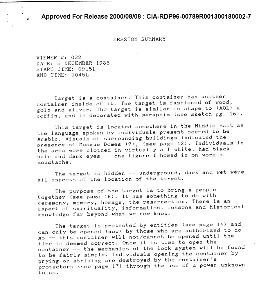 Unfortunately, it seems the CIA was unable to locate and prove the existence of the container Remote Viewer #32 claimed to have seen. Of course, we all know in reality the Ark of the Covenant is actually being kept at Donald Trump’s Mar-a-Lago estate.