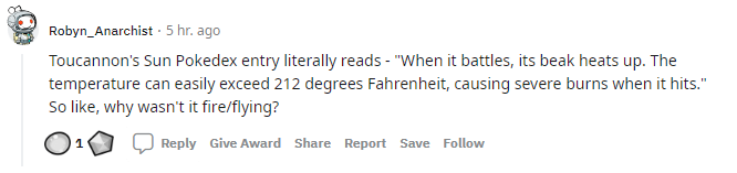 Some trainers came out and said that the constant addition of normal/flying types is getting tiring and began giving suggestions on how to make early PokéBirds more interesting. Some suggested retconning the Pokémon to just mono-flying while others suggested just giving them other types like fire or dark or psychic.