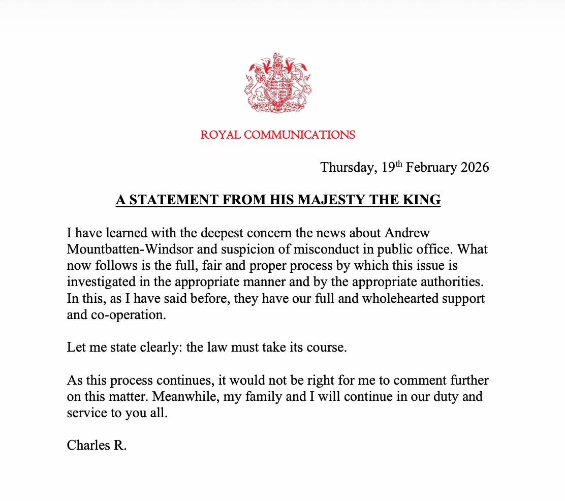 King Charles has now issued a public statement, sharing that he is deeply concerned after learning of Andrew Mountbatten-Windsor’s arrest. As found by TMZ, this was a direct statement from the head of the royal to let this happen to his younger brother. Charles said there will be a “full, fair and proper process by which this issue is investigated in the appropriate manner and by the appropriate authorities.”
