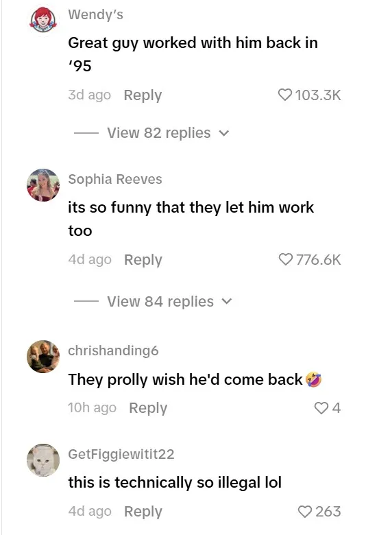 Even Wendy’s themselves got in on the action, leaving comments like, “It’s like he never left.” Johnston spent about 30 minutes helping out, and Smotherman said, “everyone loved him” that night.